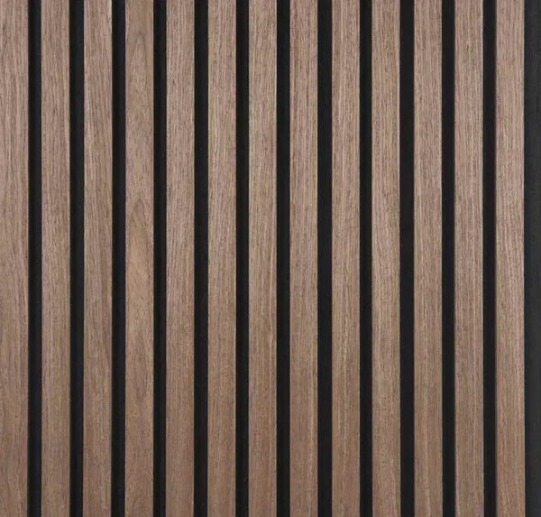 The panels are made from environmentally friendly materials. The acoustic felt layer is made from recycled plastic. The slats are made of MDF (medium-density fiberboard) and have a veneered surface for increased durability and aesthetics.